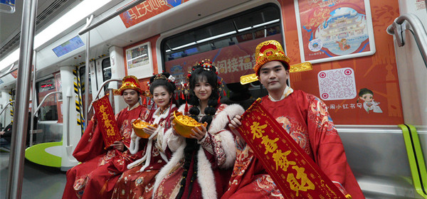 2月5日,長沙地鐵3號線列車與五一廣場地鐵站內人頭攢動,一場融合傳統年俗與現代潮流的“馬上天心閣 福滿長沙城”天心閣新春文化快閃活動在此精彩上演。